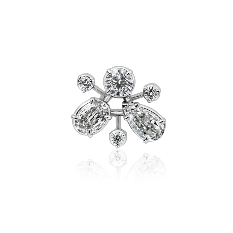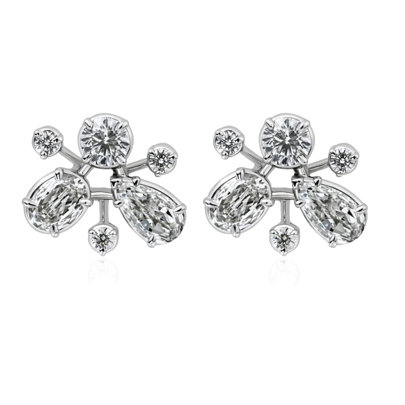 This pair of 14K white gold Christopher Designs of New York earrings features two L’Amour crisscut diamonds, two Pear Crisscut diamonds, and eight Crisscut round diamonds set in an elegant cluster design. The total diamond weight of the pair is 1.87 ctw.