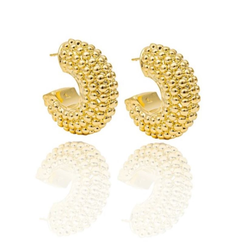 This pair of 18k gold-filled bold hoop earrings features a textured design with a durable gold layer bonded to a metal core, offering a luxurious look at a more affordable price. The raised design adds dimension and style, making them perfect for both casual and formal occasions. These medium to...